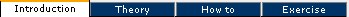 The different topics usually consist of the content tabs Introduction, Theory, How To and Exercise, see the illustration below. In customised courses and non IT-training this could vary. If the training is done in the given order, the contents of the content tabs are shown one after another for each topic. You can yourself choose the content tab you wish utilise in the training. If a tab does not have any content, it appears inactive and cannot be selected. In some courses, tabs without content are not shown.