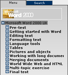 The menu on the left side of the program window shows an overview of the courses available. To choose a course, select it by clicking on the title. A menu of the main topics included in the selected course will then be displayed, see the illustration below. When you select a main topic an introduction of the topic appears, and the attached sub-topics are shown in the menu. The training can either be done in the given order, or you can choose the desired topic yourself. Pre-test should be performed to reveal the training needs.